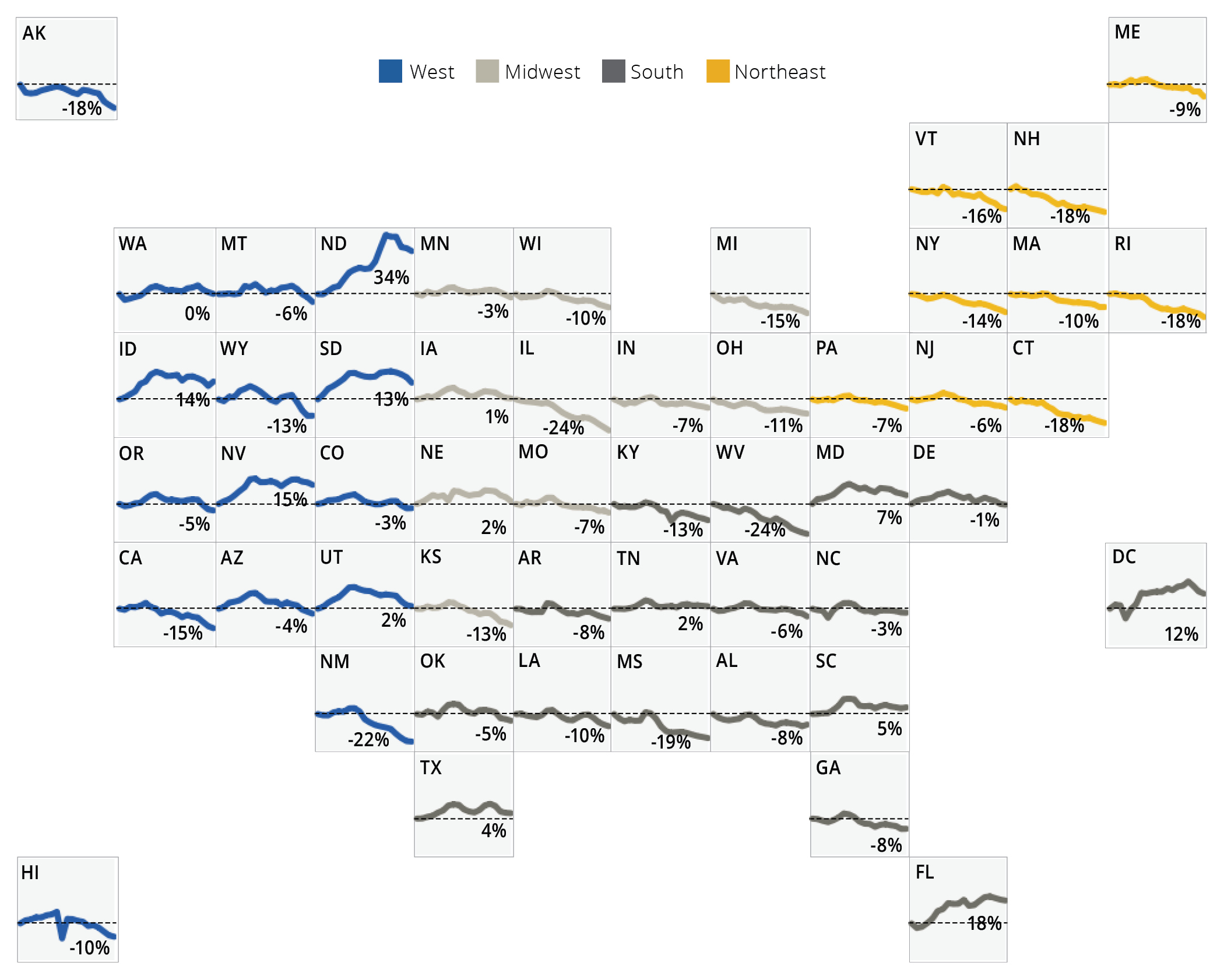 State Variation Leads to the National Net Balance; Contraction Begins Around the Country Mid-Decade