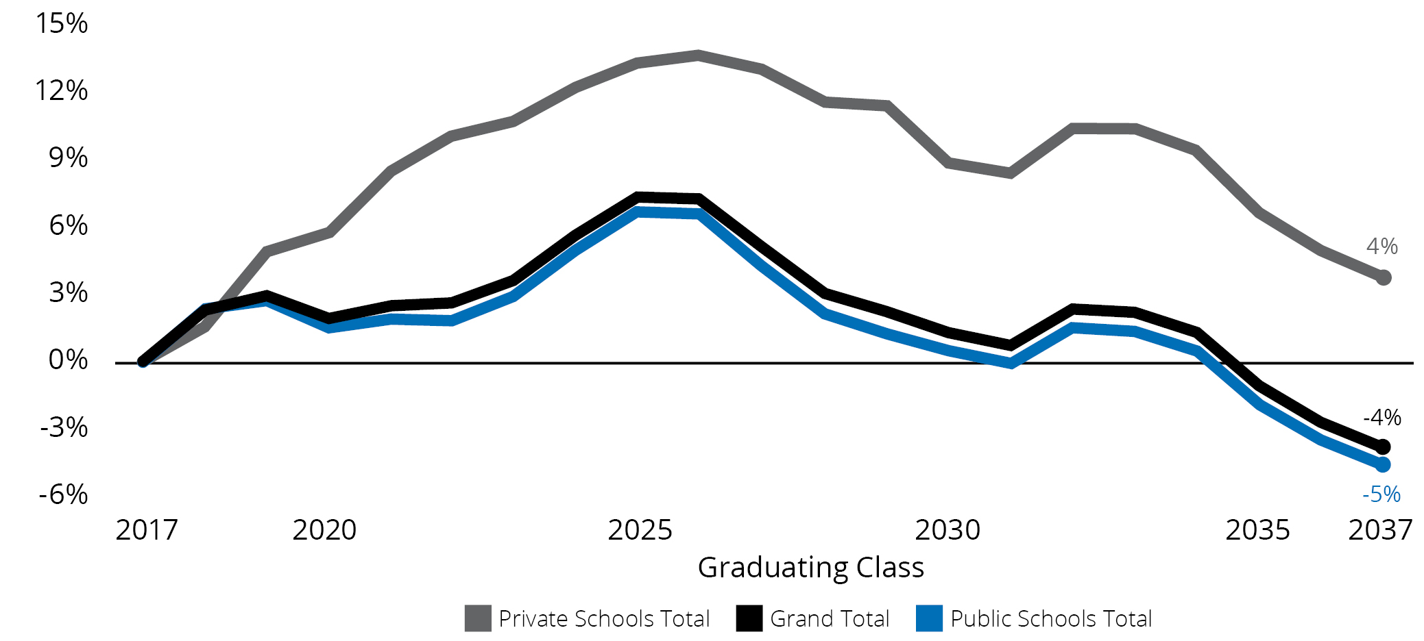 Source: Western Interstate Commission for Higher Education, Knocking at the College Door, 10th edition, 2020. WICHE projections and analysis; see Technical Appendix for details about the private school data source.
